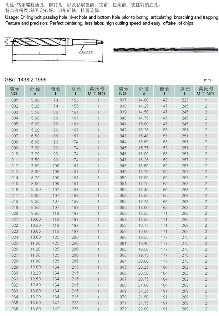 锥柄长麻花钻